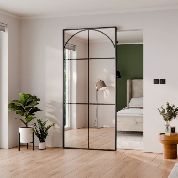 Drzwi przesuwne LUSTRO MODI 2 to nowoczesne, eleganckie i wyjątkowo efektowne drzwi wewnętrzne stworzone z myślą o wnętrzach premium. Aluminiowa czarna rama połączona z dużą taflą lustra tworzy minimalistyczny, luksusowy design, który idealnie pasuje do nowoczesnych domów, apartamentów, biur i przestrzeni komercyjnych. Ukryty system przesuwny sprawia, że drzwi wyglądają lekko i estetycznie, a mechanizm działa płynnie i cicho.