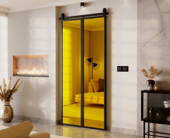 Drzwi Harmonijkowe Przesuwne Łamane Złote LUSTRO Aluminium Gładkie