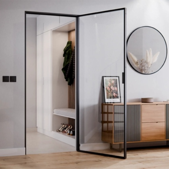 Drzwi Rozwierane w czarnej aluminiowej ramie to idealne rozwiązanie do: