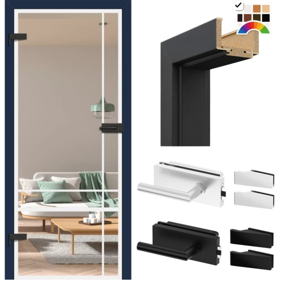 Drzwi Szklane Loftowe GRAF 34 Erkado z Ościeżnicą Kolory z Okuciami Zestaw Konfiguracja