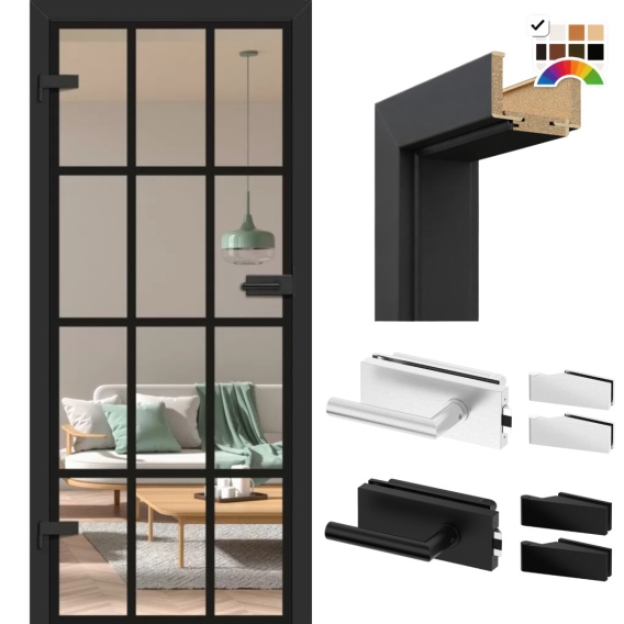 Drzwi Szklane Loftowe GRAF 36 Erkado z Ościeżnicą Kolory z Okuciami Zestaw Konfiguracja