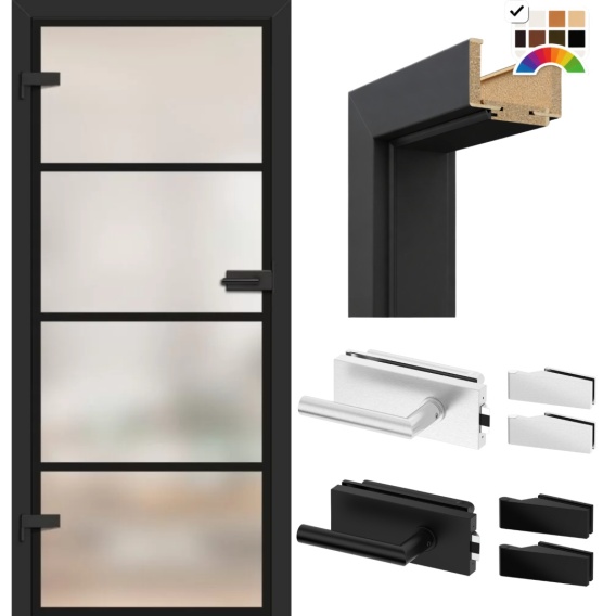 Drzwi Szklane Loftowe GRAF 38 Erkado z Ościeżnicą Kolory z Okuciami Zestaw Konfiguracja