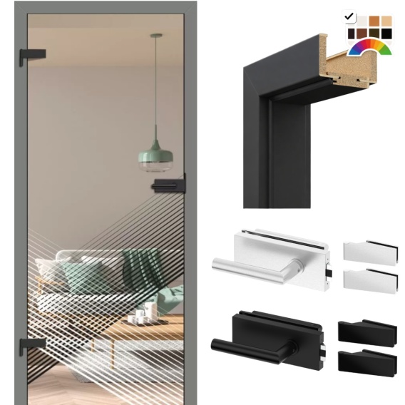 System GRAF umożliwia dopasowanie drzwi do indywidualnych potrzeb klienta – od rodzaju szkła, przez wykończenie, po ościeżnice i akcesoria.