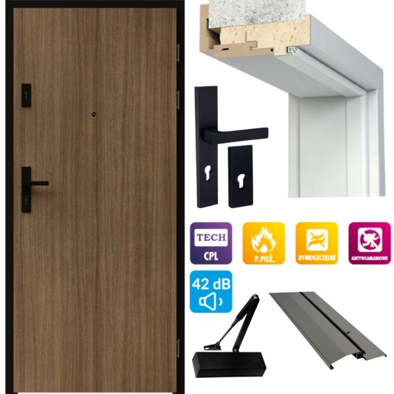 Drzwi wejściowe NEFRYT EI30 RC3 42Db Przeciwpożarowe Dymoszczelne DRE z ościeżnicą hybrydową Antywłamaniowe Kolory Konfiguracja