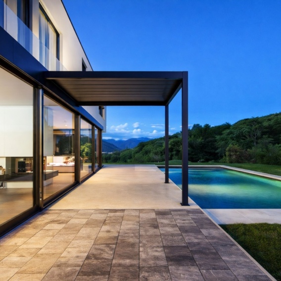 Solidna aluminiowa konstrukcja z powłoką proszkową gwarantuje odporność na korozję, a stalowe lamele zapewniają trwałość i stabilność nawet przy intensywnym użytkowaniu. Pergola świetnie sprawdzi się jako zadaszenie tarasu, altana ogrodowa, przestrzeń relaksu przy basenie lub elegancka strefa wypoczynkowa w restauracji czy hotelu.