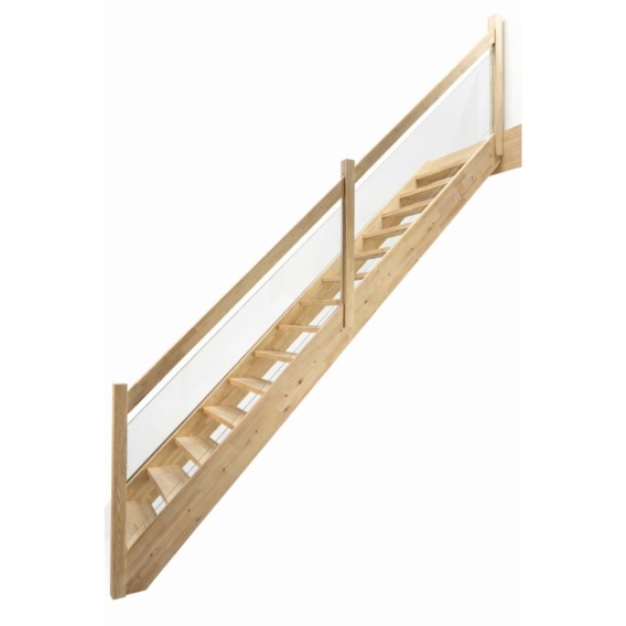 Schody MP MAX Ażurowe balustrada z szybą Proste Sosnowe bez podstopnic