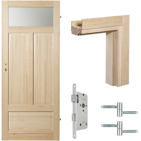 Ościeżnice wykonane są również z litego drewna sosnowego, dopasowane kolorystycznie i konstrukcyjnie do skrzydeł.